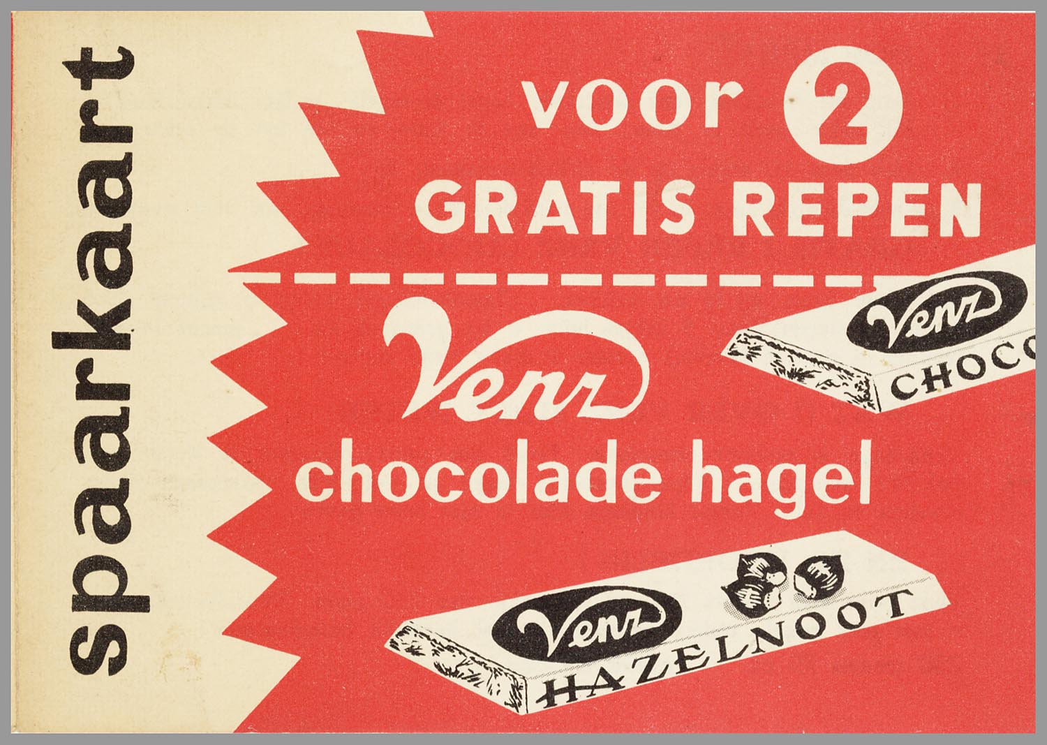 We kunnen nadenken over hoe we meer chocolade kunnen verkopen aan dezelfde klant. Kan met een abonnementen systeem, maar de gewone ouderwetse spaarkaart zou die ook nog kunnen werken? Dat die ‘ouderwets’ is blijkt wel uit deze advertentie van Venz repen.